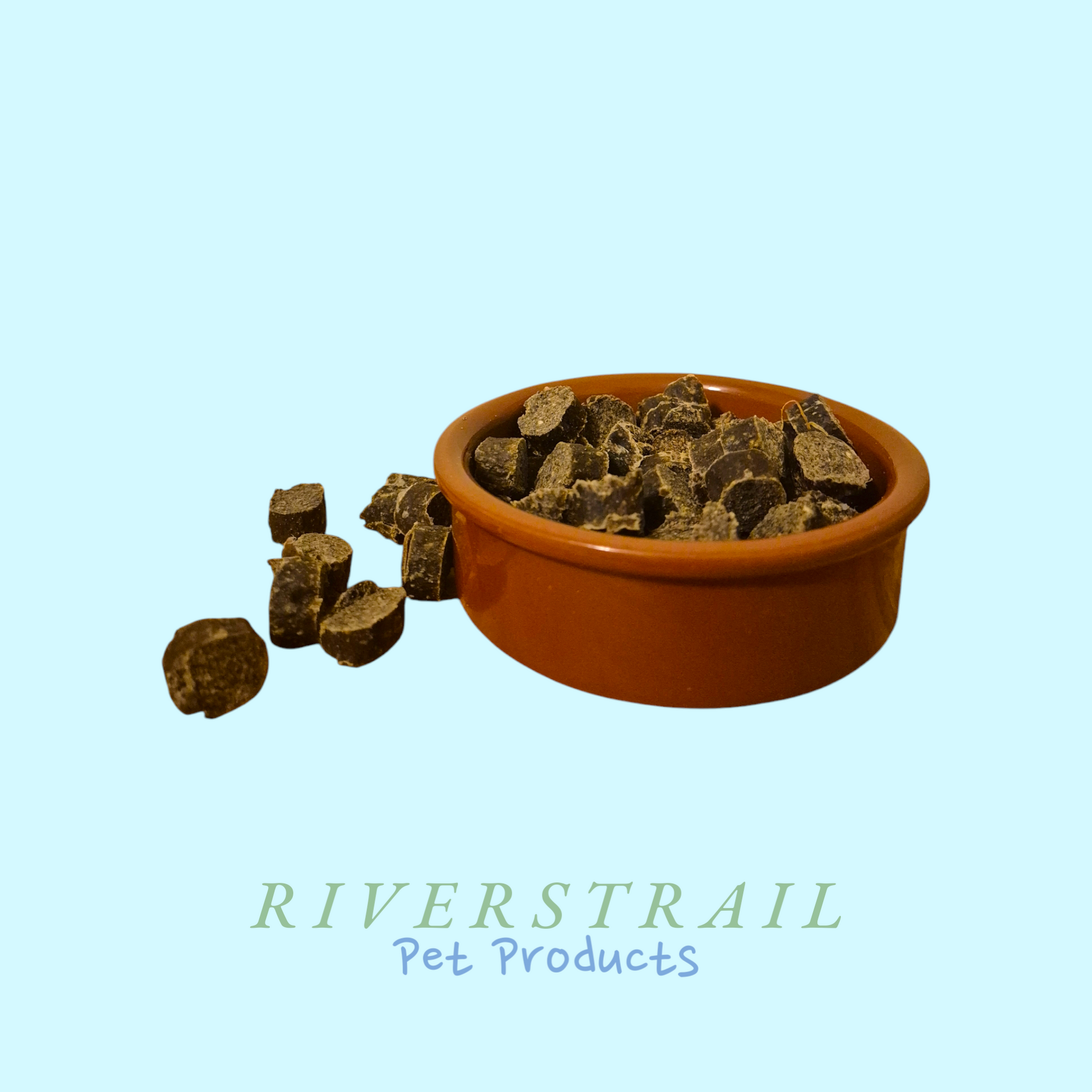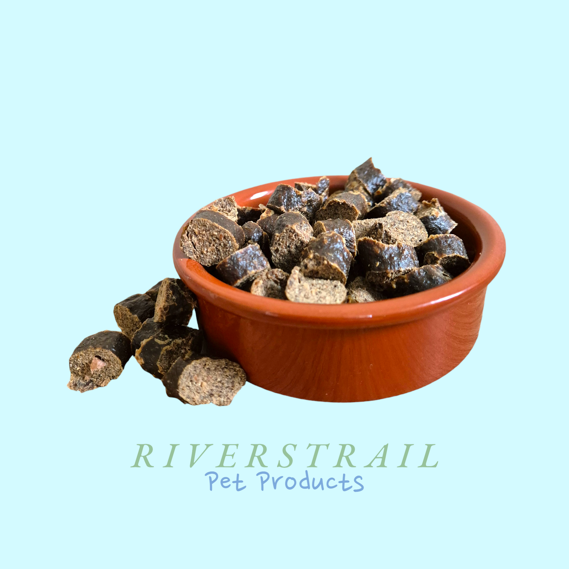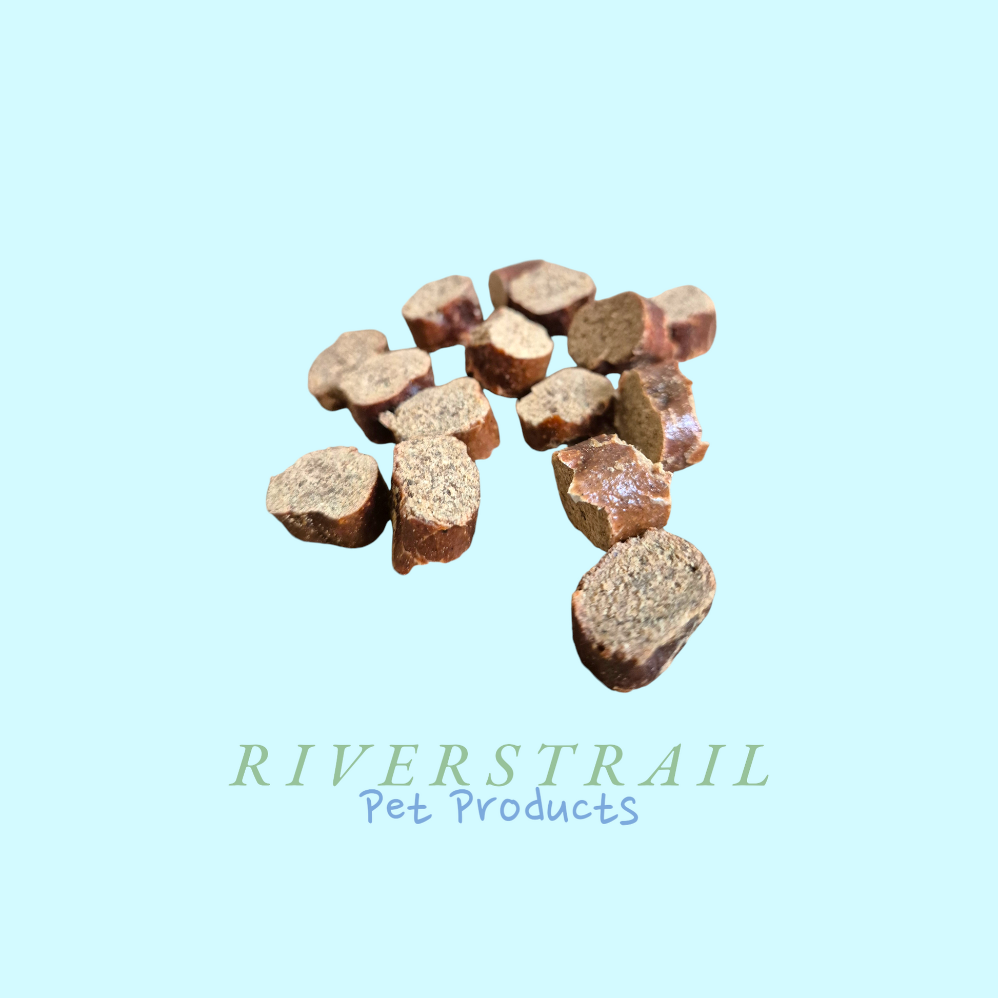 A sausage bite treat that has everything! We currently stock these in 5 different flavours which are suitable for all pets, cats, dogs and puppies! a great training treat or small snack! Grain free and made with UK products this 100% natural treat has all the minerals, vitamins and nutrients that your pets could need from a treat with a great variety in flavors.
